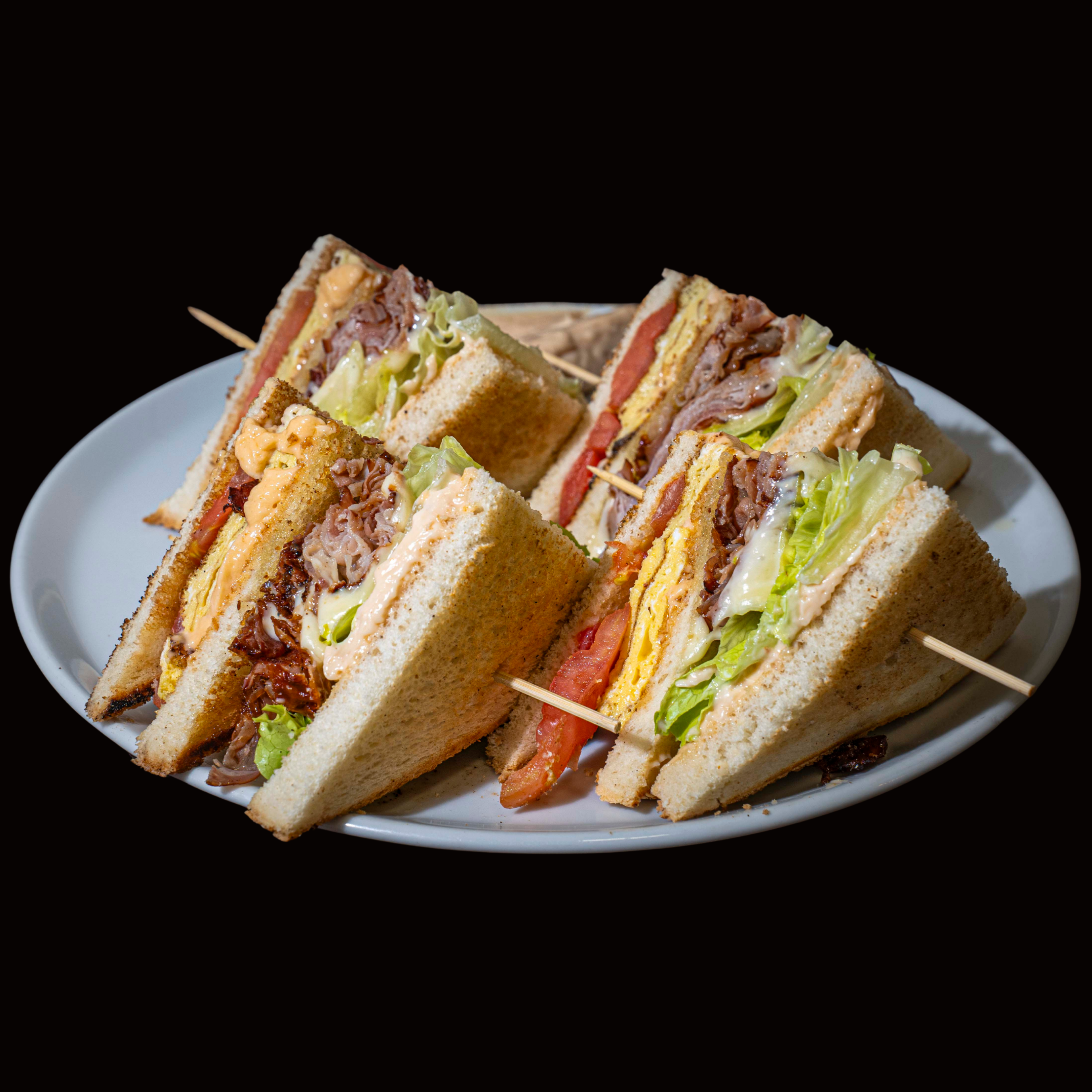 POMODORO, FRITTATA, BACON (PANCETTA AFFUMICATA), FORMAGGIO, LATTUGA, SALSA ROSA