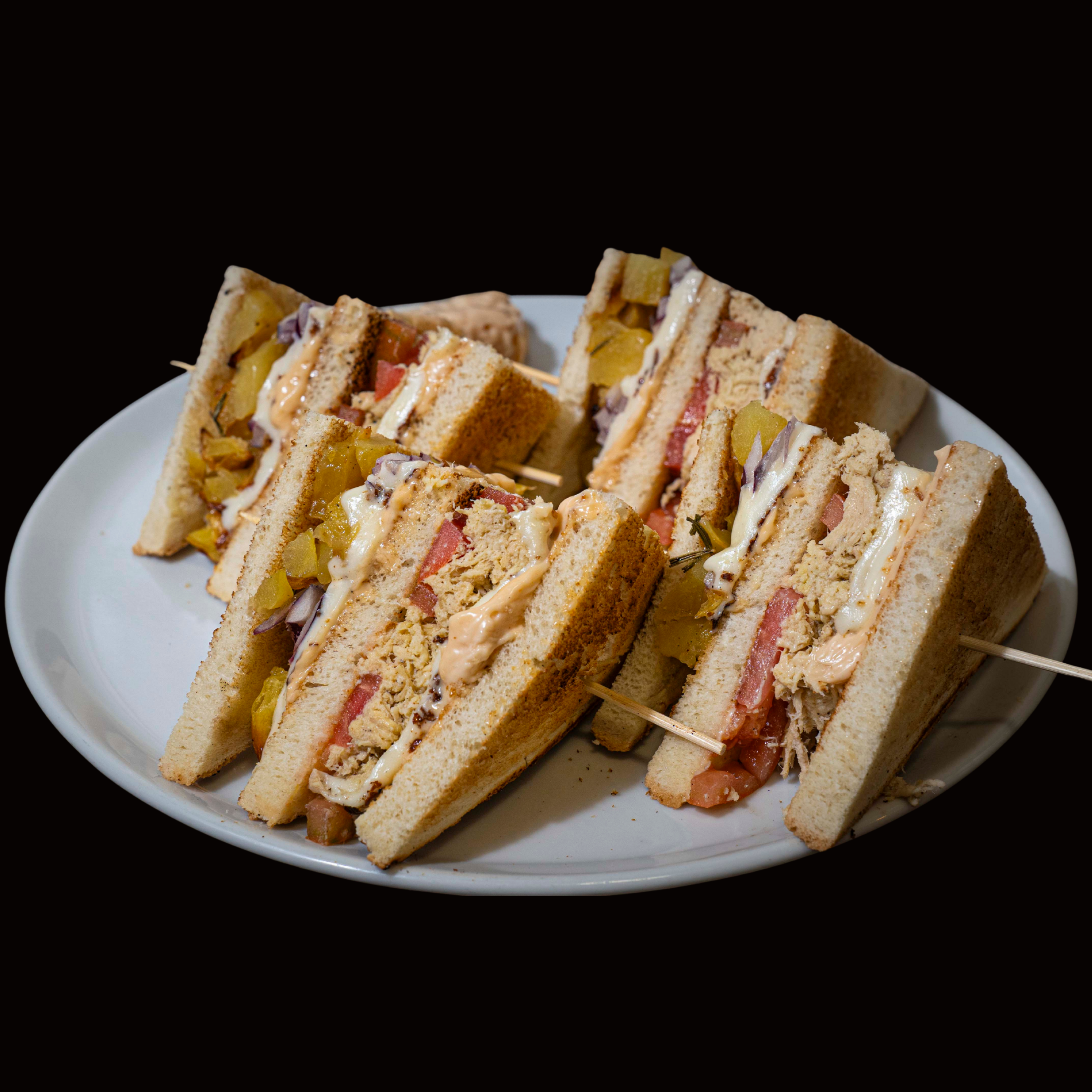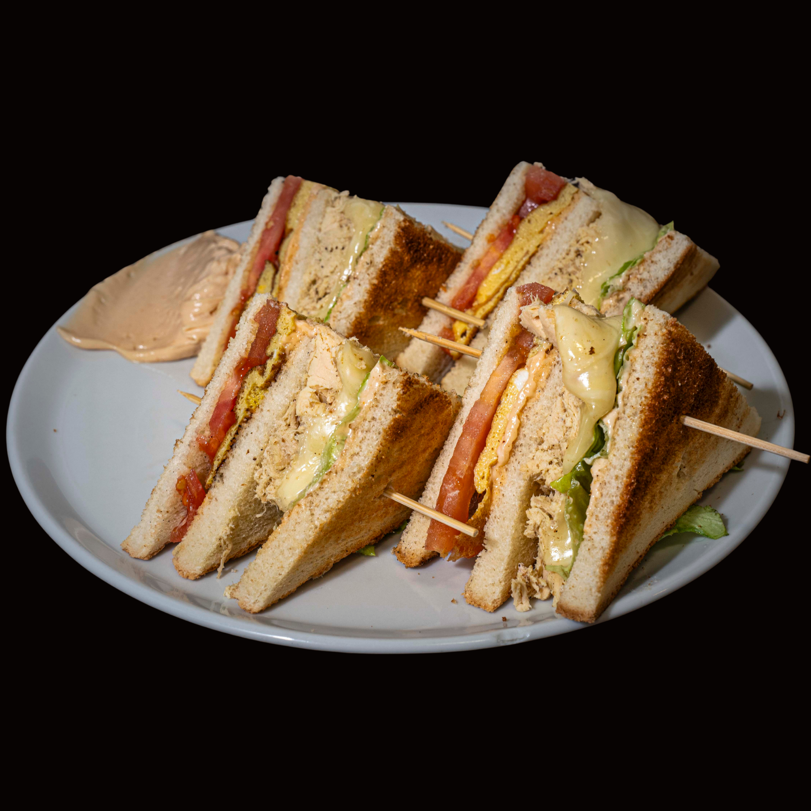 POMODORO, FRITTATA, POLLO SFILACCIATO*1, FORMAGGIO, LATTUGA, SALSA ROSA