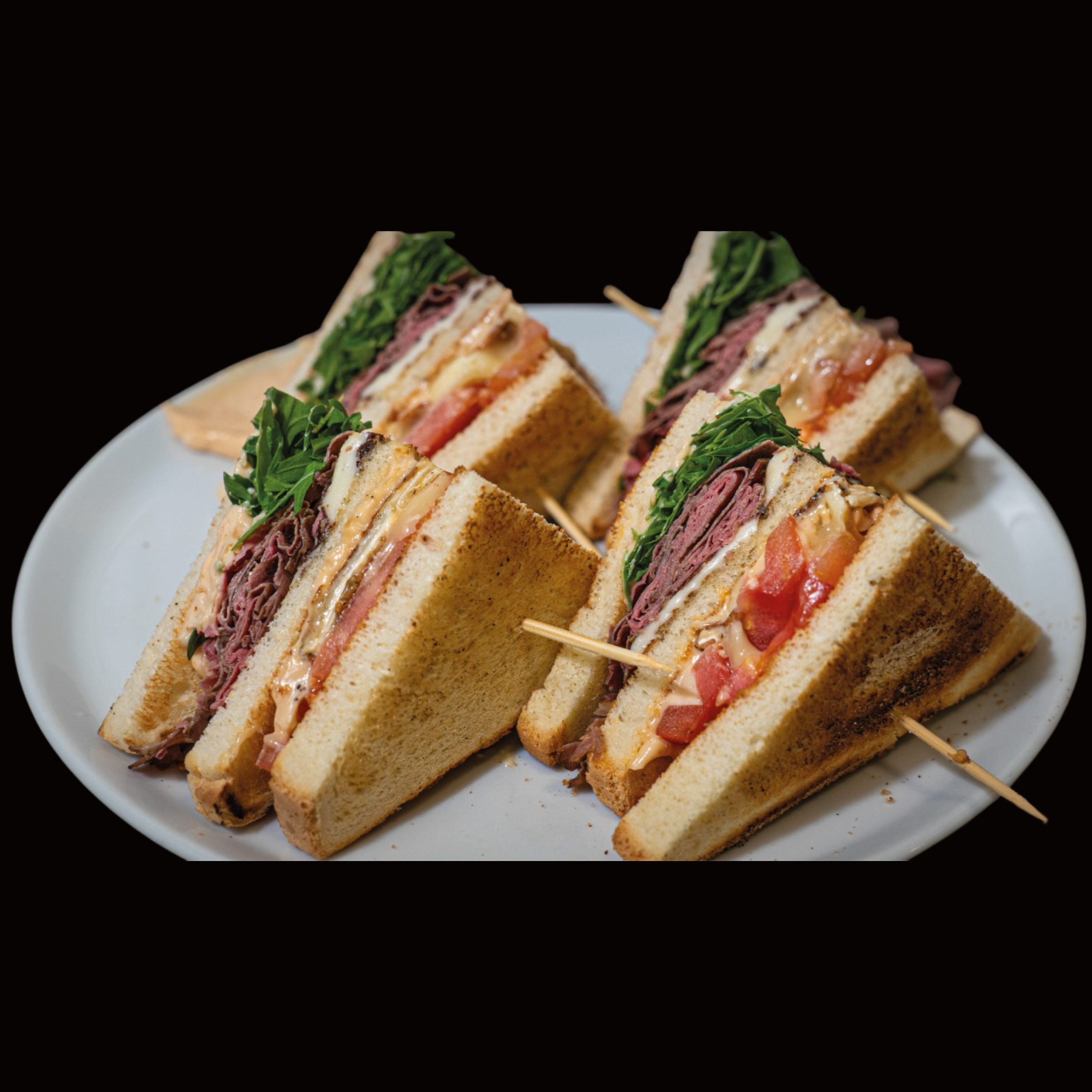 POMODORO, BRIE, MOZZARELLA, ROASTBEEF, RUCOLA, SALSA ROSA